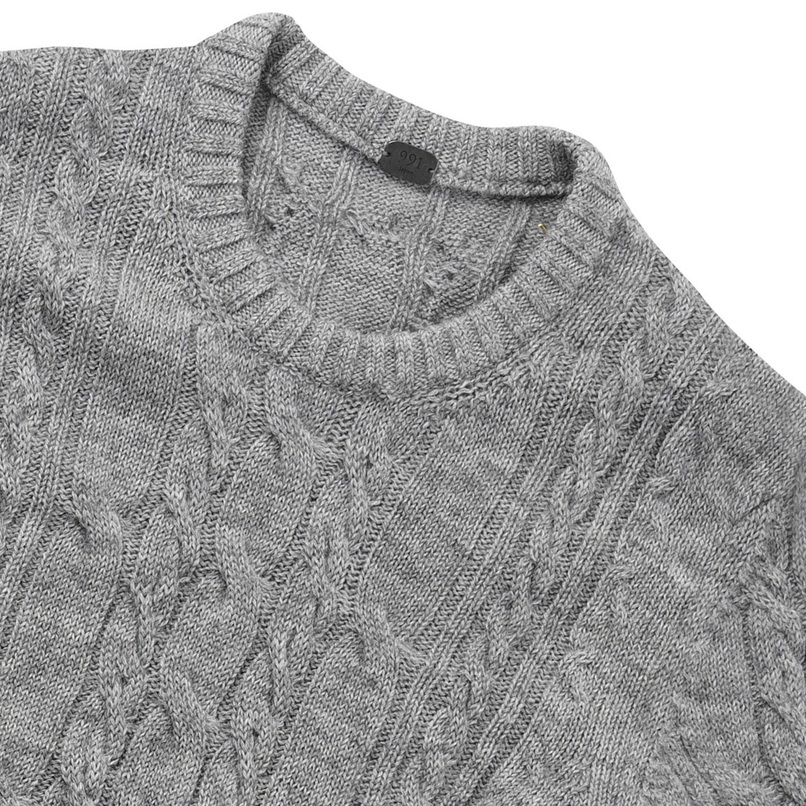 YBJA211A / Pullover(WOOL+Mohair) Color:#71 L-Gray Size:46/48/50 ¥39,600(税込) NEWデザインの5ゲージケーブル柄プルオーバー モヘヤと英国羊毛を引き揃えて編み込んでいます。 粗野なウールとモヘヤのミックス感が新しいデザイン。